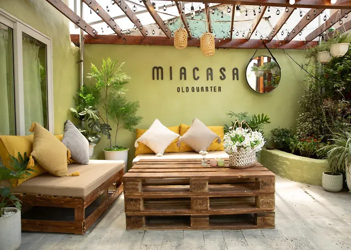 Apartament Miacasaoldquarter - 3 Beds - Netflix-Big Balcony posiada wyposażony aneks kuchenny oraz jadalnię i jadalnię na świeżym powietrzu, w których goście mogą się zrelaksować i delektować posiłkami. Dzięki luksusowym udogodnieniom, w tym tarasowi i miejscu na piknik, goście mogą odpocząć i zrelaksować się. Taras zachęca do podziwiania widoku na ogród.
